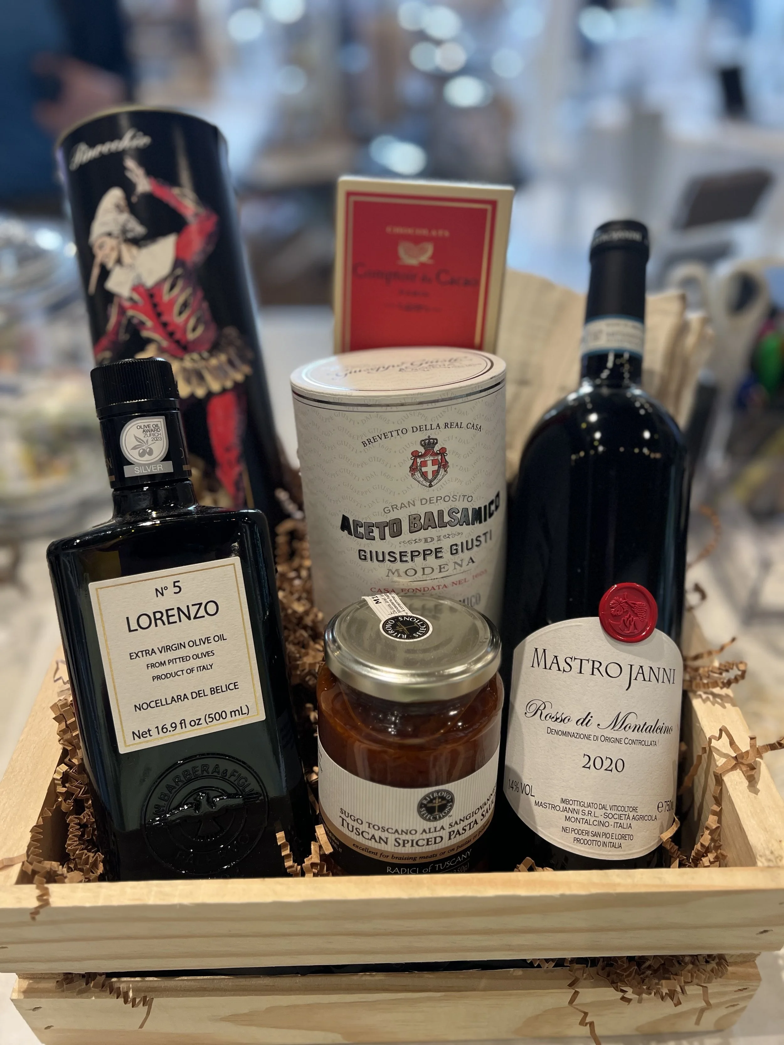 Montesano Market custom baskets make the perfect gift for that special someone. Any birthday, anniversary, or celebration is complemented perfectly by our wide variety of wines and fine artisanal goods carefully selected and paired in a beautiful basket and wrapping.